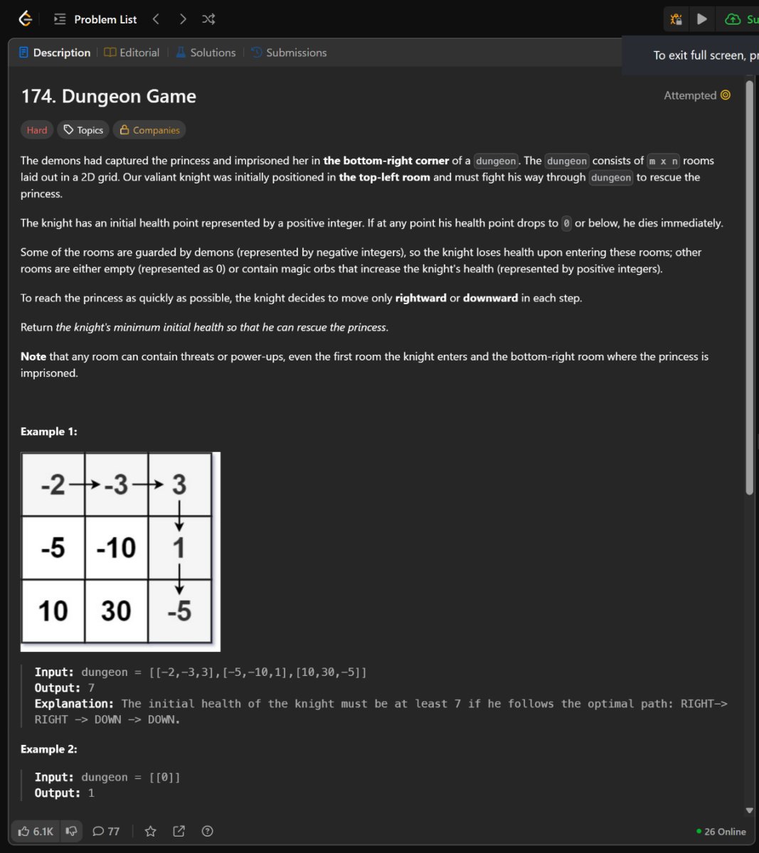 - This one was stressful and frustrating. Initially, I had written appropriate code, but it turned out to be too slow: Time Limit Exceeded: 41/45. After that, I spent a long time trying to rewrite the code to find a faster way. Two hours later, I didn't manage it ❌ It seems I can't save the princess from the dungeon alone.