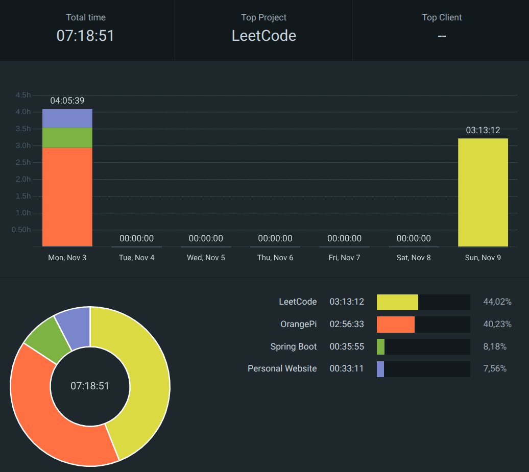 Spent three hours trying to fix the old system and another three hours setting up the new one. Since I did the setup during lunch breaks at work, I didn't track it in Clockify. Usually, when I do something during a work break, I don't track time, as there's already very little time for lunch, and I don't want to spend extra time on time-booking.