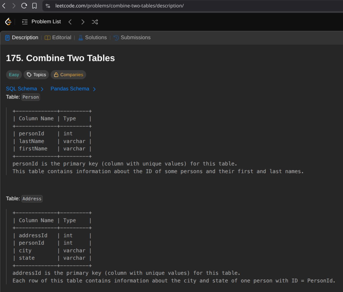 Tried to solve problem 174. Dungeon Game. Could not write a quick code on my own. Read an online explanation and completed the task with its help. Already looked at problem #175, and there was a surprise waiting for me: LeetCode has SQL problems. My SQL knowledge is very limited, so I haven't passed this one yet.