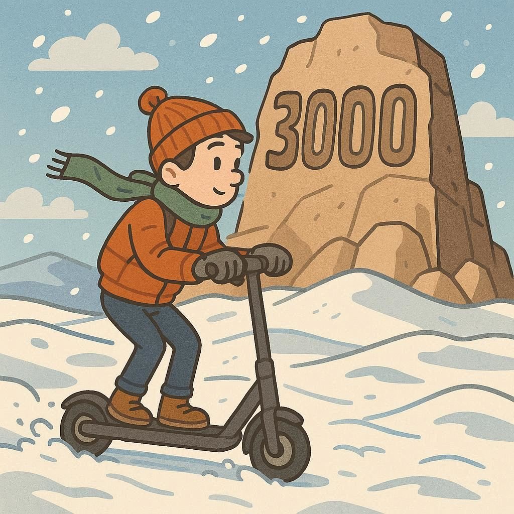 I've reached a total of 3,000 kilometers on my electric scooter 🎉